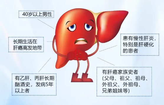 5. 有肝癌家族史者: 肝癌具有一定的家族聚集性,如果直系亲属中有肝癌患者,那么其患肝癌的风险会比普通人高。